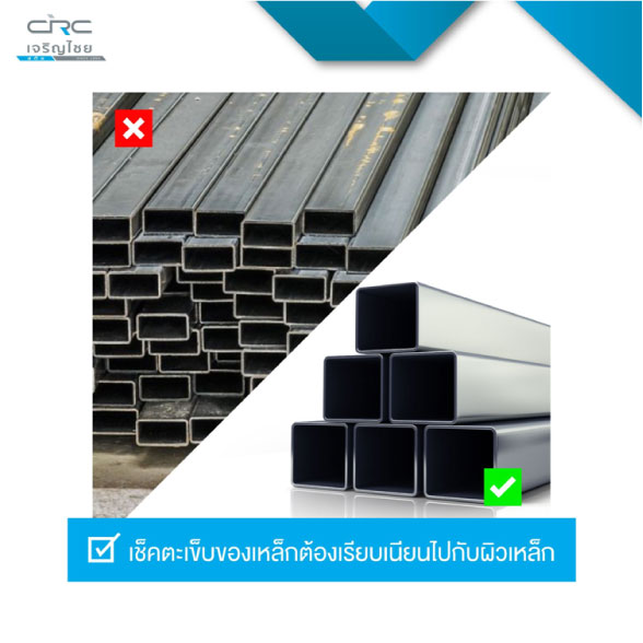 2.เช็คความบิดเบี้ยว บุบ ของตัวเหล็ก อาจจะเกิดขึ้นในระหว่างการขนส่ง ส่วนใหญ่มักจะเกิดกับเหล็กกล่อง เหล็กกลม เป็นต้น